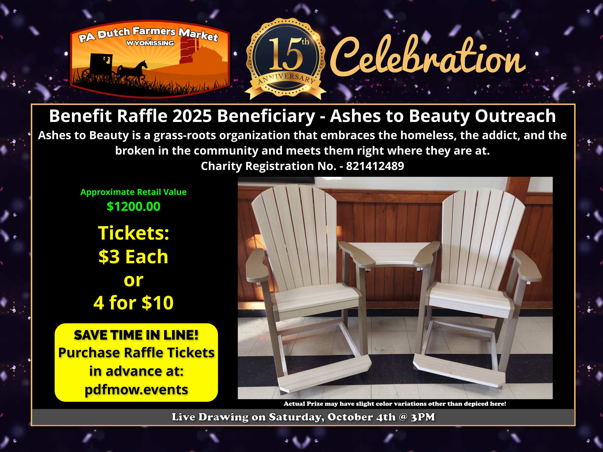 Ticket prices for our Benefit Raffle for 2025 are $3 each, or 4 Tickets for $10 - All Online Ticket sales must be made by 1:00 PM on October 4th, 2025 so we have time to process them, and get them entered into the drawing to be held at 3 PM.
